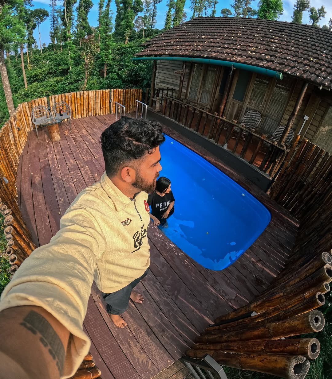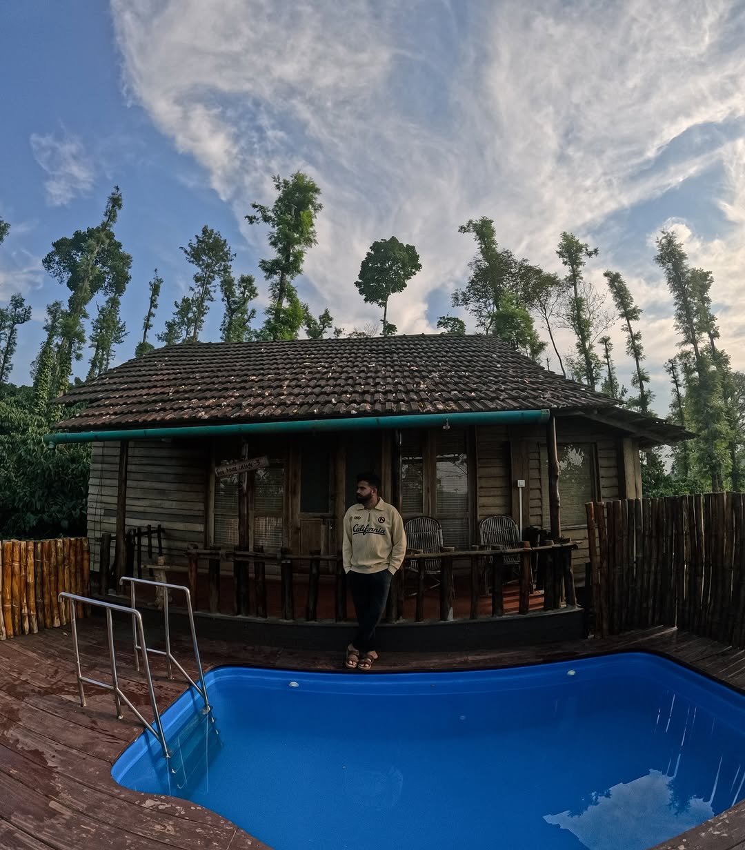 Escape into the heart of nature at our Coffee Plantation Premium Stay, a stunning wooden cottage with a private plunge pool set amidst lush green estates in Wayanad. Surrounded by coffee-scented air, chirping birds, and panoramic plantation views, this premium wood house offers an intimate blend of rustic charm and modern luxury. Whether you're a couple seeking romance, a solo traveler in search of serenity, or a small family wanting to unwind.